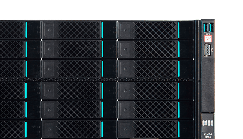 KunTai R524 存储型服务器是IWBET(数码基于鲲鹏处理器推出的新一代 ARM数据中心服务器。。。。主要面向存储业务,,,,具有海量存储、、、高性能、、、、低功耗以及易扩展的特点,,适合为大数据分析、、软件定义存 储等应用场景的工作负载进行髙效加速。。。